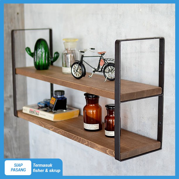 rak kayu besi minimalis hiasan dinding 01 Shopee Indonesia Sumber : shopee.co.id
